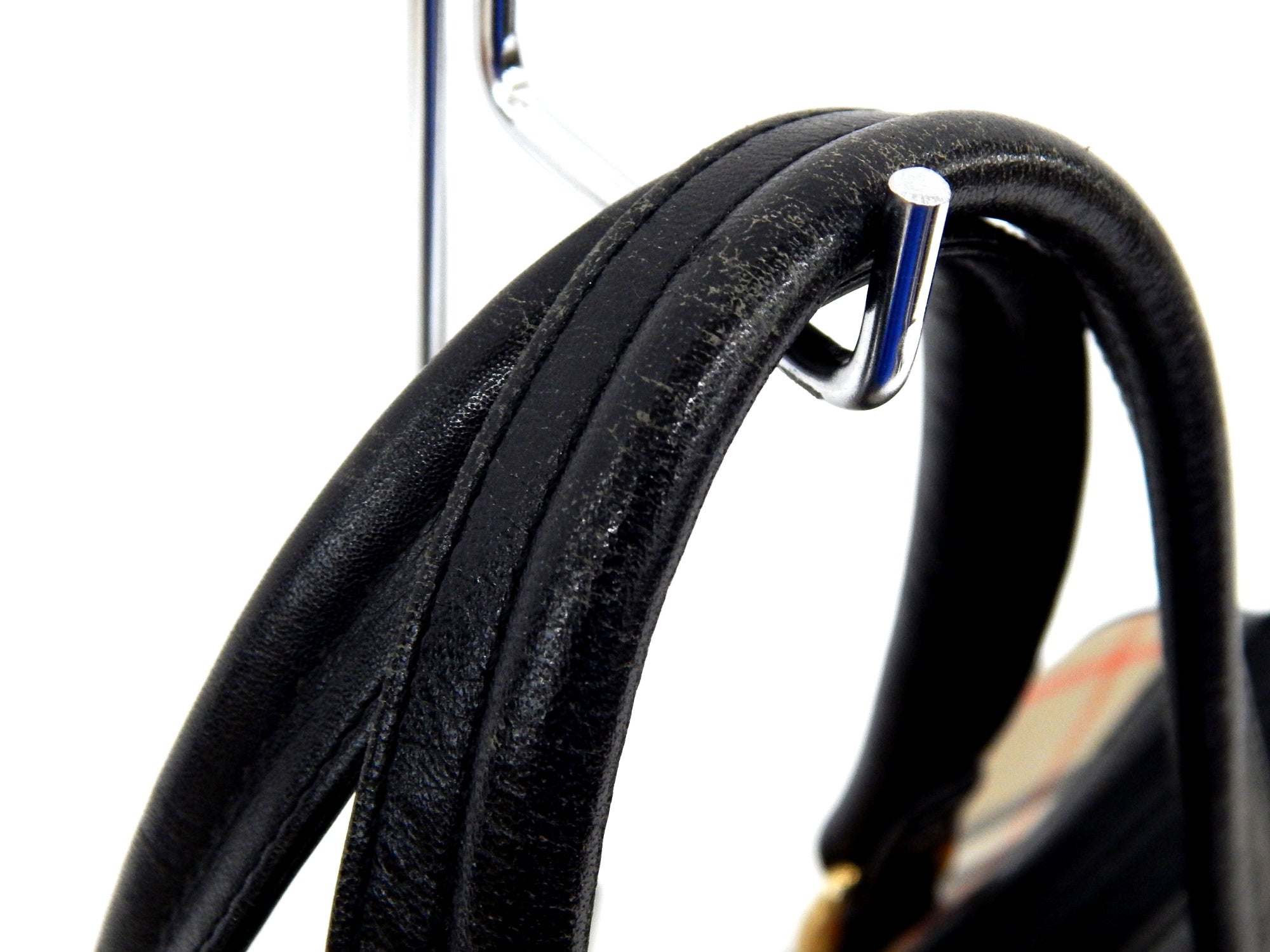 使用による皮部分の傷み、金具メッキの色落ちがあります。