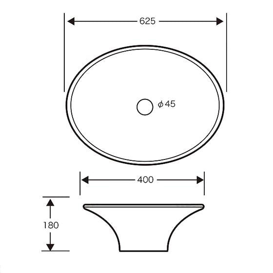 洗面ボウル B-257 オーバル型 ホワイト 置型 卓上型 手洗いボウル 陶器